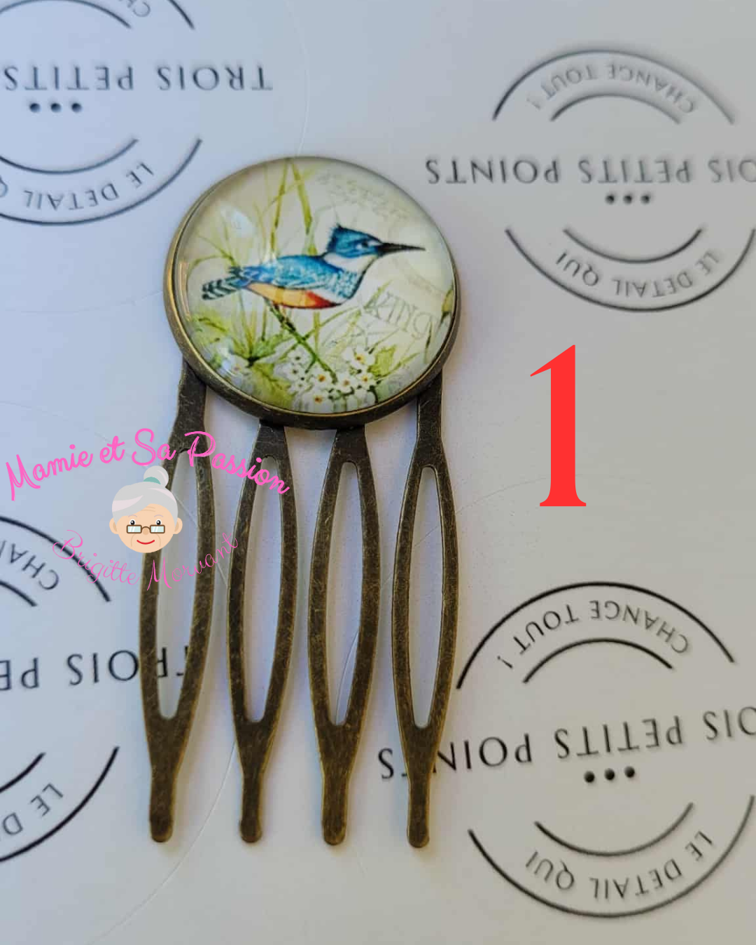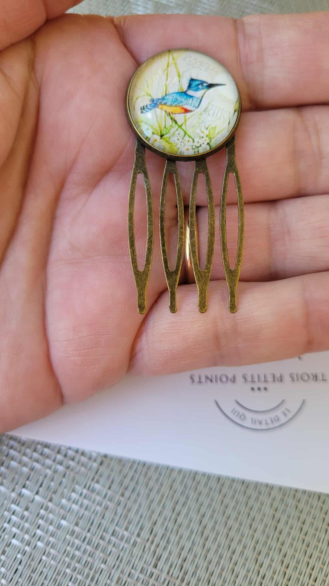 Peigne à cheveux 4 dents style ancien - Dôme verre